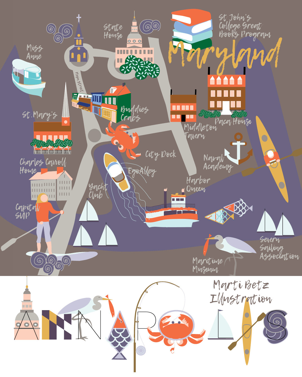 Illustration and Lettering Annapolis, MD Map